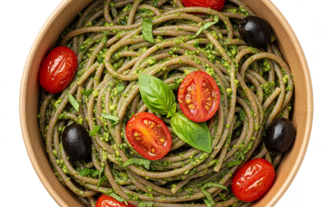Espaguetis integrales con pesto vegano